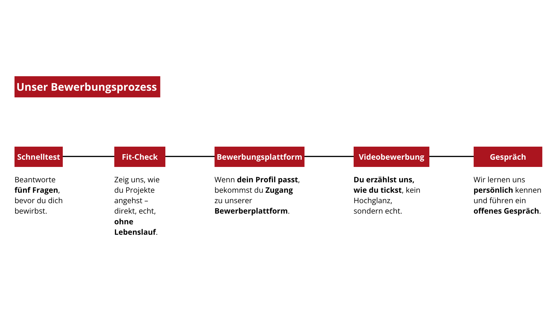 Unser Bewerbungsprozess ist einfach, transparent und fair – damit du genau weißt, was dich erwartet.